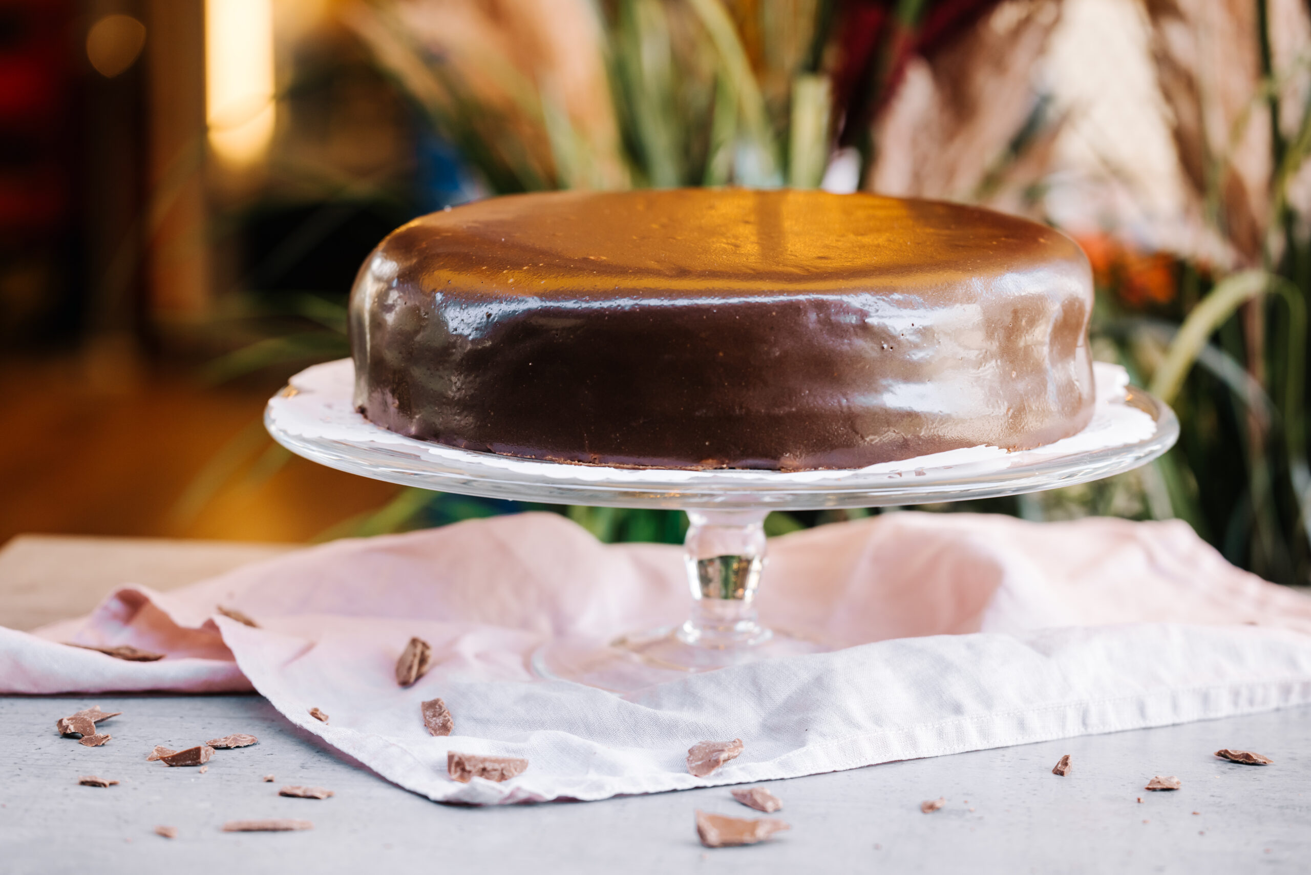 Sandmasse aus Butter, Zucker, Dotter, Eiweiß und Schokolade, mit Marillenmarmelade gefüllt und mit Schokofondant glasiert.